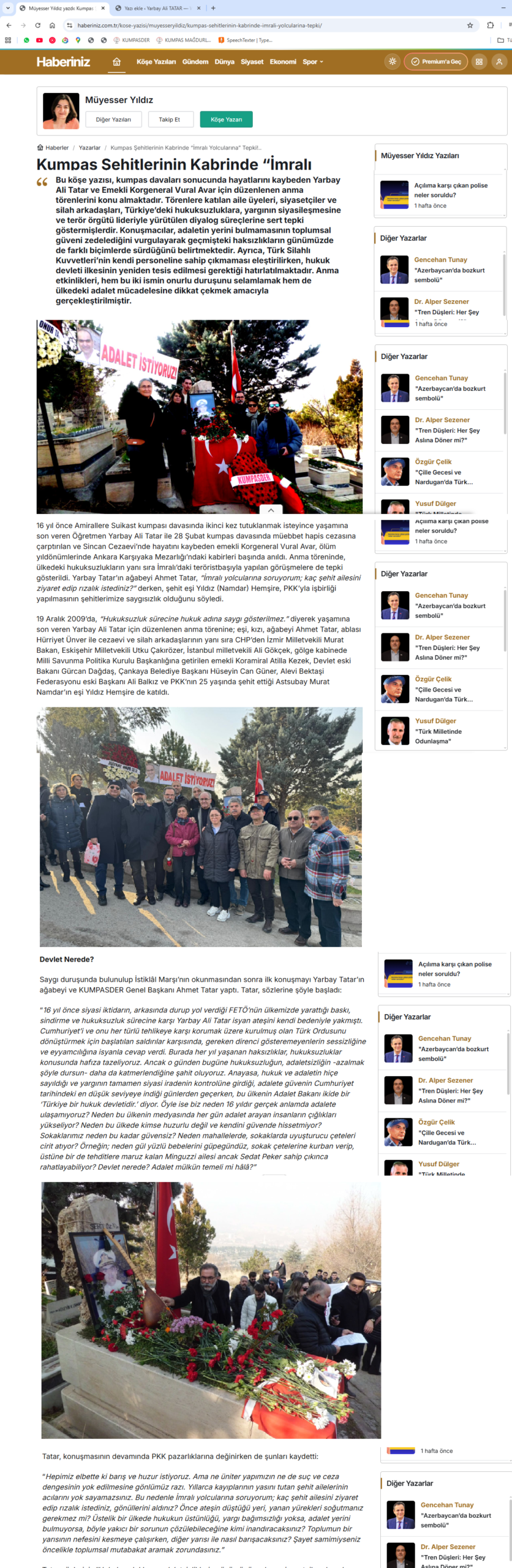 Kumpas Şehitlerinin Kabrinde “İmralı Yolcularına” Tepki!.. – HABERiNiZ.com – Müyesser YILDIZYazan Ahmet Tatar / 21 Aralık 2025